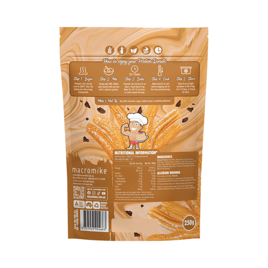 Macro Mike Protein Donut Baking Mix Choc Chip Cinnamon Churros 250g