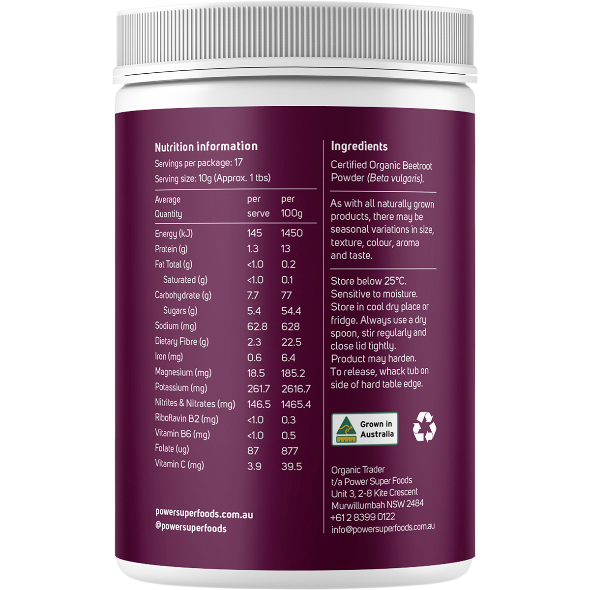 Elevate your daily wellness routine with Power Super Foods Beetroot Powder, a pure and potent supplement crafted from 100% Australian Organic Beetroot (Beta Vulgaris). This vibrant, nutrient-dense powder is perfect for health enthusiasts and anyone looking to enhance their vitality and energy levels naturally. Whether you’re a fitness fanatic, a busy professional, or simply someone who values wholesome nutrition, beetroot powder can seamlessly integrate into your lifestyle, offering a delicious boost to smoothies, baked goods, or even morning oatmeal.