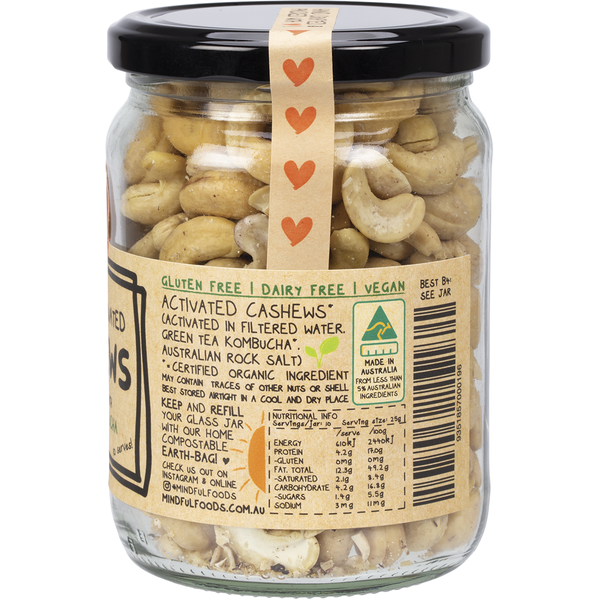 What sets these cashews apart is the unique activation process. By soaking them in filtered water and infusing them with green tea kombucha, we enhance their digestibility while preserving their rich, nutty flavour. Each handful delivers a satisfying crunch that pairs beautifully with the subtle notes of Australian rock salt, making them an ideal snack for on-the-go or a delightful addition to your favourite dishes. Choose Mindful Foods Cashews for a clean, organic snack that aligns with your wellness goals without compromising on taste.