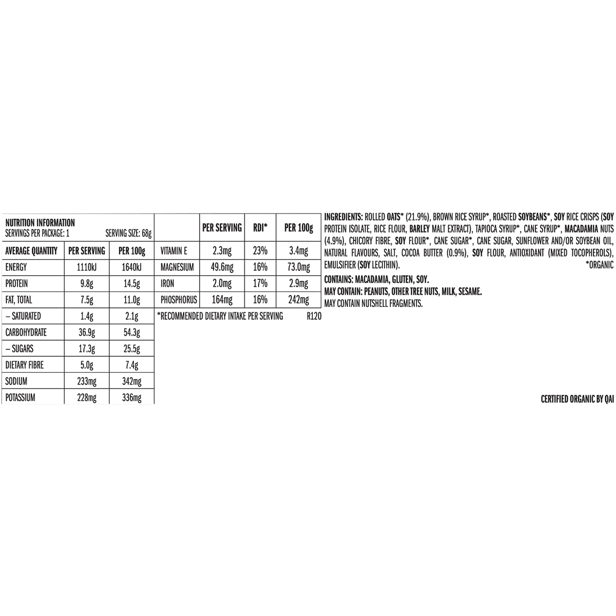 Organic Goodness: Featuring 21.9% Organic Rolled Oats and other certified organic ingredients, supporting both your body and the planet.