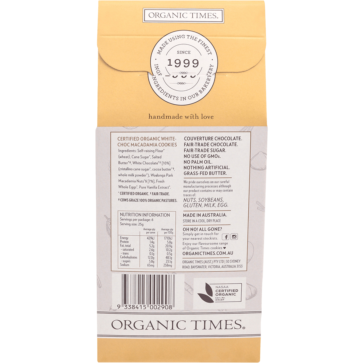 Indulge your taste buds with Organic Times Cookies White Choc Macadamia, a delightful blend of wholesome ingredients crafted for those who appreciate quality in every bite. This 150g pack is perfect for anyone seeking a guilt-free treat that doesn’t compromise on flavour. These cookies are a delicious way to satisfy your sweet cravings while knowing you’re enjoying a product made from certified organic ingredients. Whether you’re at home, at the office, or on the go, these cookies are the ideal companion for an afternoon pick-me-up or a sweet addition to your lunch.