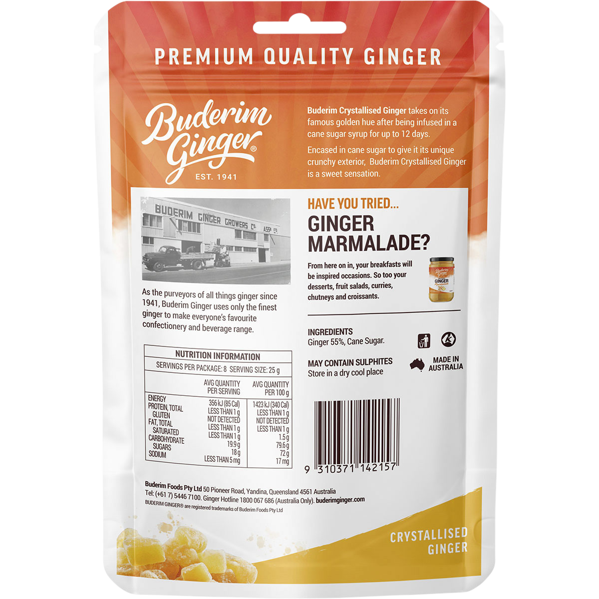 Buderim Ginger’s commitment to quality ensures that you’re indulging in a product that’s not only delicious but also made with care. Enjoy the satisfying crunch and the rich, aromatic flavour of ginger that will leave you feeling refreshed and revitalised.