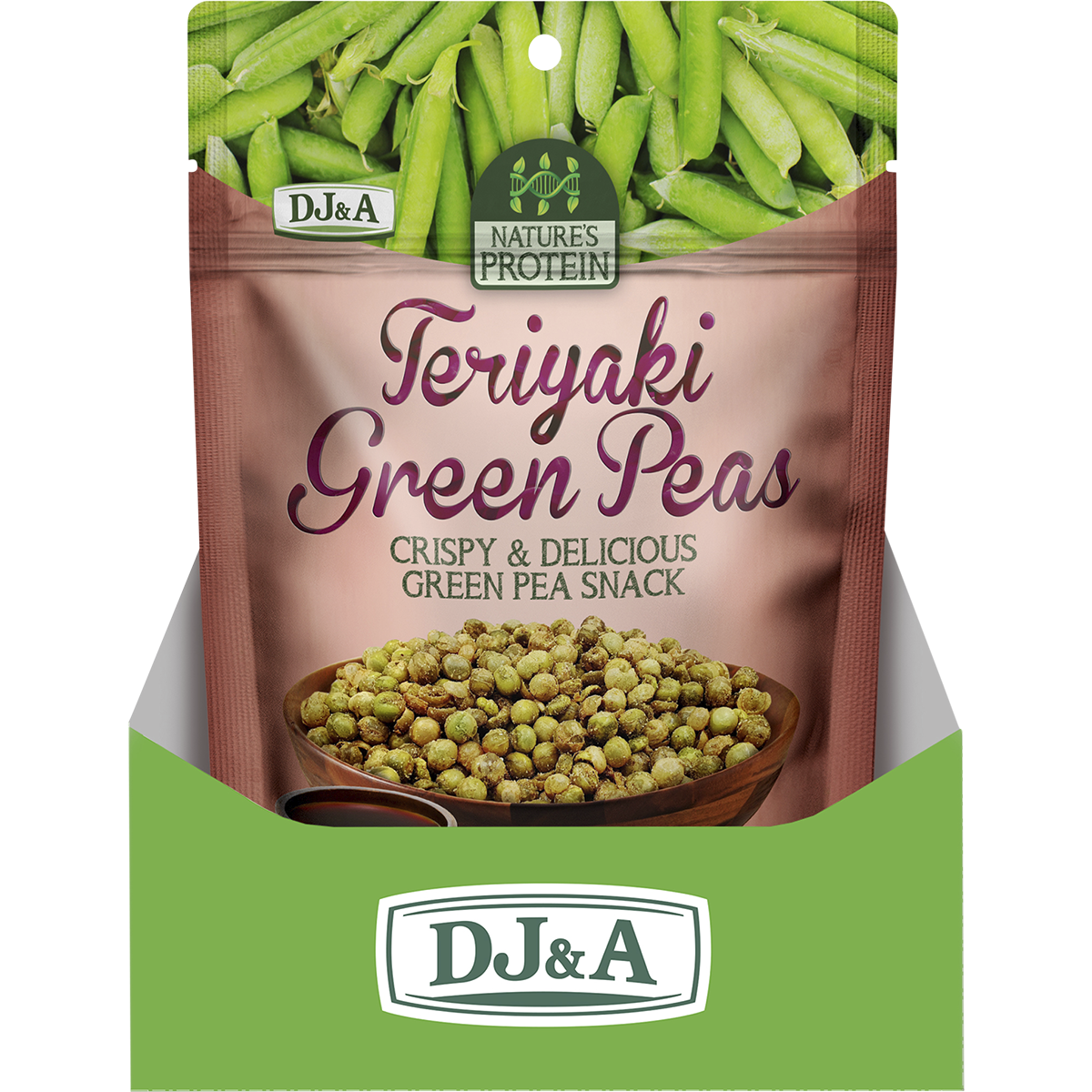 Grab a pack of DJ&A Teriyaki Green Peas for your next road trip, office snack, or post-workout refuel!