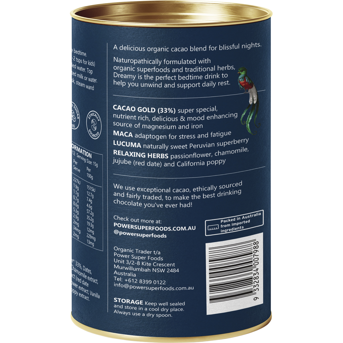 Indulge in a soothing cup of Power Super Foods Dreamy Night Drinking Chocolate, the perfect blend designed for those seeking a delightful way to unwind after a long day. This unique drinking chocolate combines the rich, velvety taste of cacao with an array of organic, plant-based ingredients that create a cosy, calming experience. Ideal for anyone looking to enhance their nighttime routine, this dreamy treat is not just about satisfying your chocolate cravings—it's about nurturing your well-being.