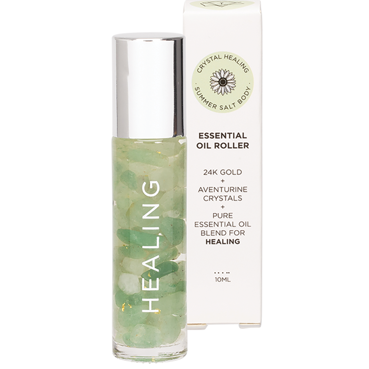 Experience the luxury of self-care with the Summer Salt Body Essential Oil Roller, a unique blend designed for those who seek balance and tranquility in their daily lives. Infused with the essence of nature and enhanced with the healing properties of aventurine and 24K gold leaf, this 10ml roller offers a delightful escape from the hustle and bustle of everyday stress. It’s perfect for anyone who loves to indulge in natural wellness practices, whether you're at home, at work, or on the go.