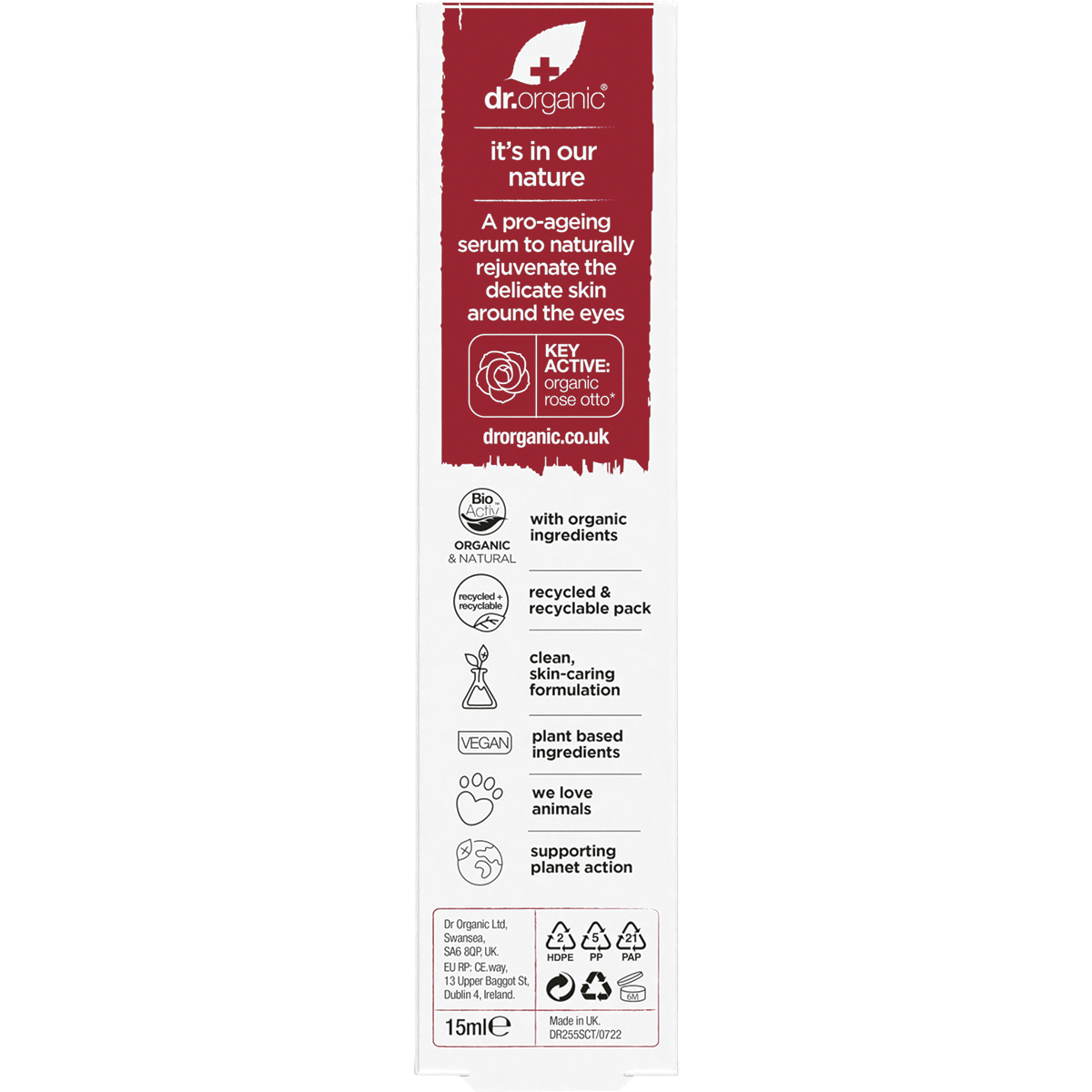 Discover the rejuvenating power of Dr. Organic Eye Serum Rose Otto, a luxurious 15ml formula designed to nourish and revitalise your delicate eye area. This exquisite serum is perfect for those seeking a natural solution to achieve brighter, more youthful-looking eyes. Infused with the enchanting essence of Rose Otto, combined with a blend of organic plant extracts, this serum offers a soothing and hydrating experience that your skin will love.