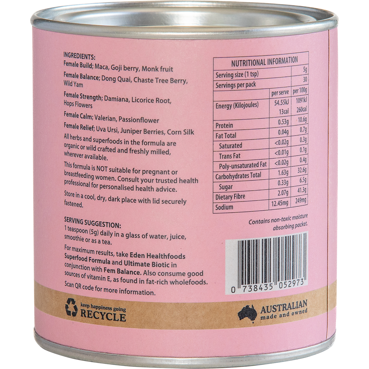 Discover a harmonious blend of nature's finest ingredients with Eden Healthfoods Fem Balance, a thoughtfully crafted superfood blend designed specifically for women. This 150g powerhouse combines a unique formulation of organic plant proteins and nutrient-rich botanicals to support your overall wellness, allowing you to embrace each day with vitality and confidence. Whether you're navigating the challenges of hormonal fluctuations or simply seeking to enhance your daily health routine, Fem Balance is here to empower you.