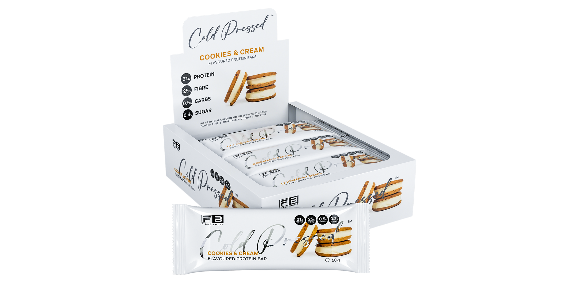 Fibre Boost Cold Pressed Cookies and Cream flavoured Protein Bar