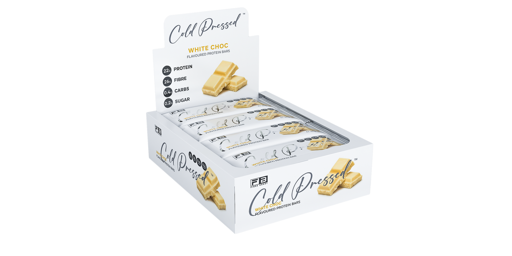Fibre Boost Cold Pressed White Choc flavoured Protein Bar
