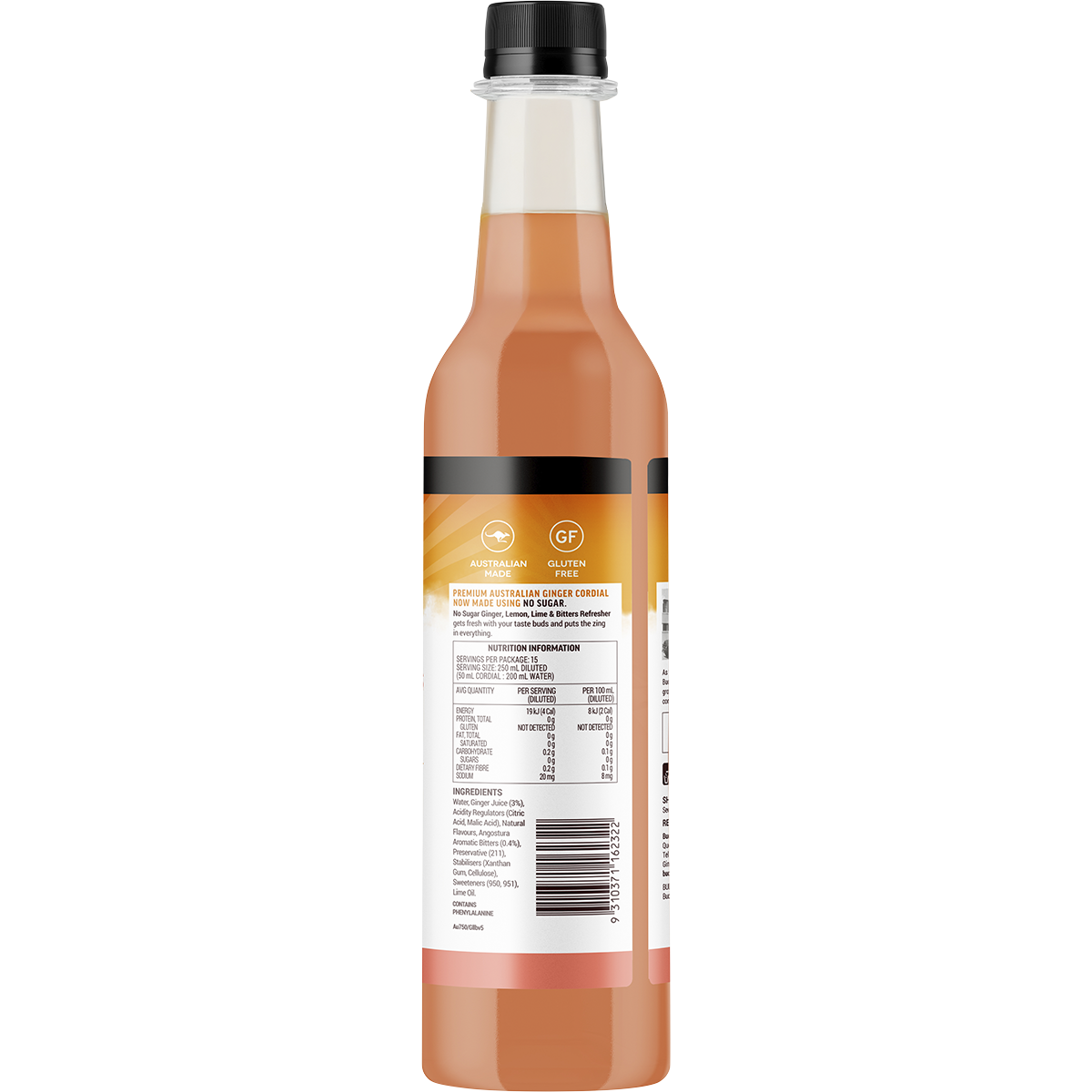 Ginger Lemon, Lime & Bitter Refresher Cordial No Sugar