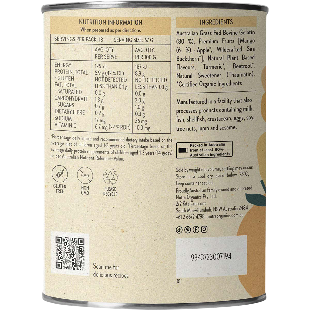 Made with a blend of premium, organic ingredients, these gummies boast the goodness of Australian grass-fed bovine gelatin, paired with the vibrant flavours of mango, apple, and wildcrafted sea buckthorn. Each gummy is a celebration of natural sweetness, offering a guilt-free indulgence that not only satisfies your taste buds but also supports your overall wellness. With the added benefits of turmeric and beetroot, these gummies bring together the best of nature in every bite.