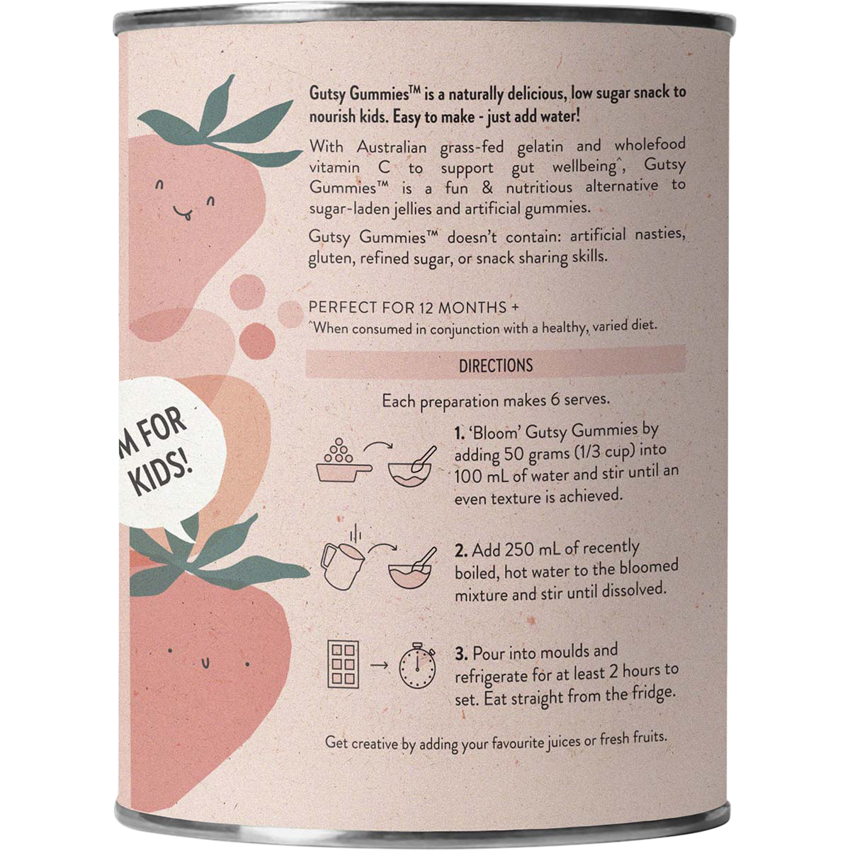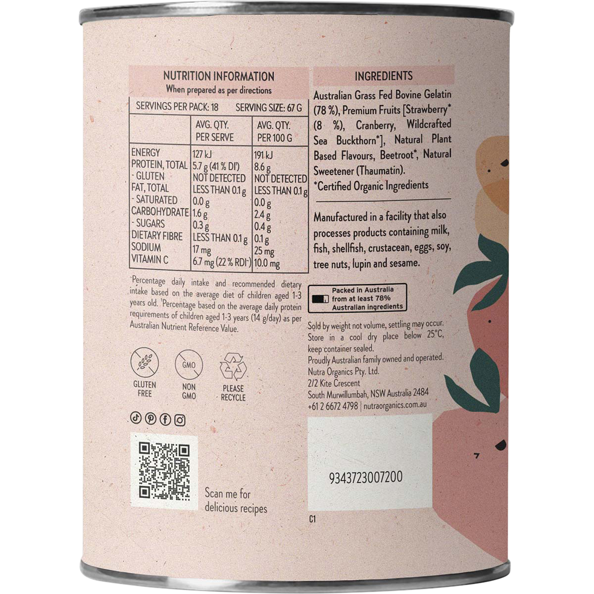 Crafted from Australian grass-fed bovine gelatin, these gummies offer a chewy texture that melts in your mouth, making them a hit with both kids and adults alike. With the bright, natural flavour of strawberries and a hint of cranberry and sea buckthorn, each gummy is not just a snack but a step toward a healthier you. Say goodbye to boring health supplements and hello to guilt-free indulgence!