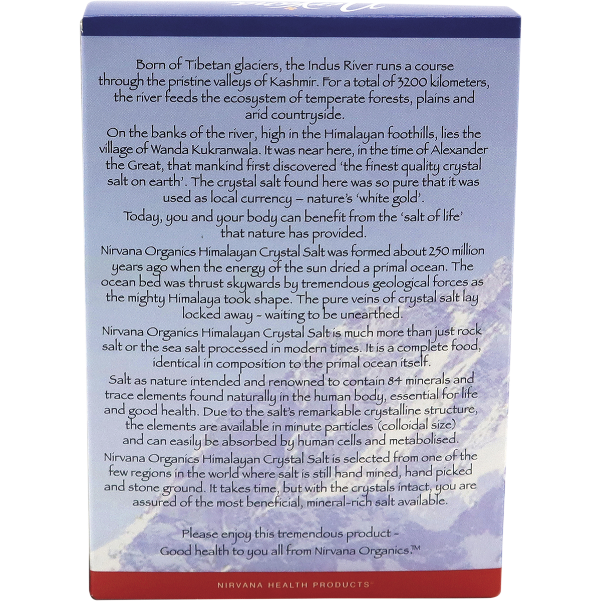 Discover the essence of nature with Nirvana Organics Himalayan Salt Granules. Sourced from the pristine Himalayan mountains, this all-natural crystal salt offers a unique flavour profile that elevates your culinary creations. Perfect for health-conscious individuals and culinary enthusiasts alike, these granules are not just a seasoning; they are a celebration of purity and taste. Whether you're enhancing the flavour of your favourite dishes or seeking a natural alternative to conventional table salt, Nirvana Organics Himalayan Salt Granules are the perfect addition to your pantry.
