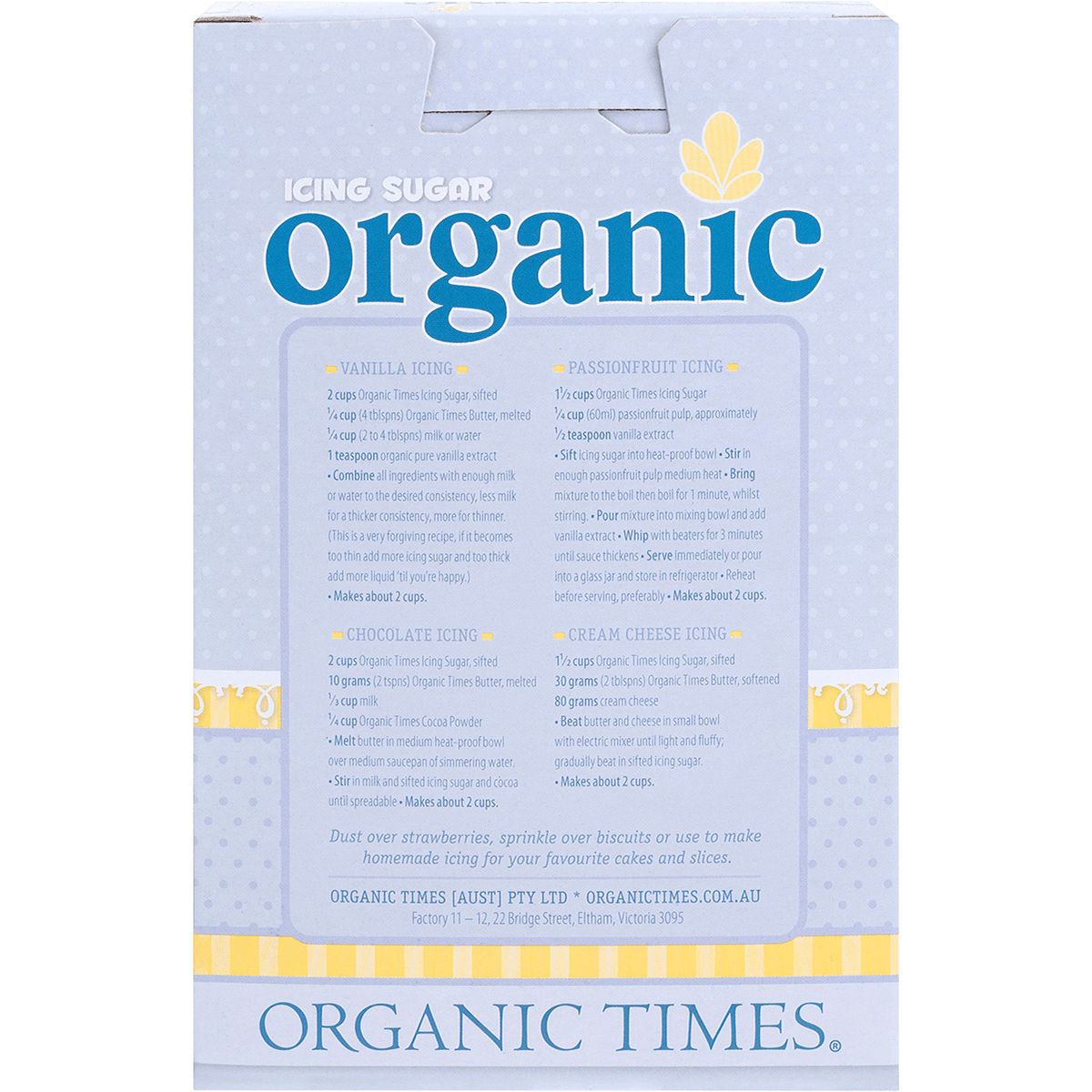 Indulge your sweet tooth with Organic Times Icing Sugar, a delightful addition to your baking pantry. This premium icing sugar is crafted from certified organic golden cane sugar blended with a touch of organic tapioca starch, ensuring a smooth, velvety texture that elevates your desserts. Perfect for health-conscious bakers, this product is designed for those who seek to create delicious treats without compromising on quality. Whether you're whipping up a batch of cupcakes or decorating a cake, this icing sugar offers a natural sweetness that enhances the flavour of your creations.