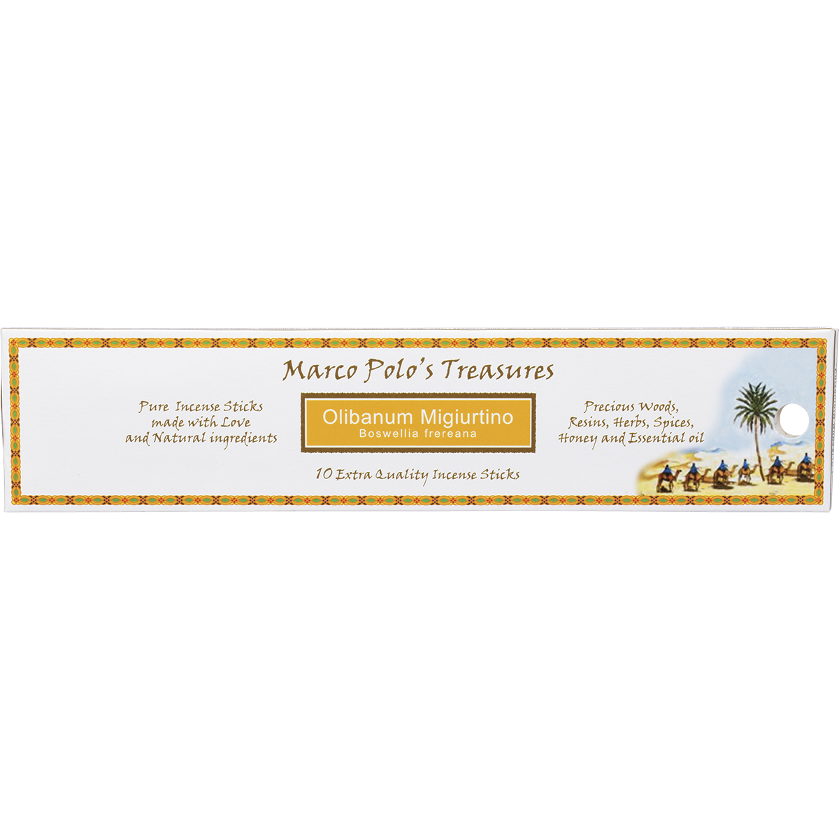 Choose Marco Polo's Treasures Incense Sticks Olibanum Migiurtino for a truly authentic experience. These sticks are crafted with care, using plant-based materials and sustainable practices, allowing you to enjoy a guilt-free aromatic escape.