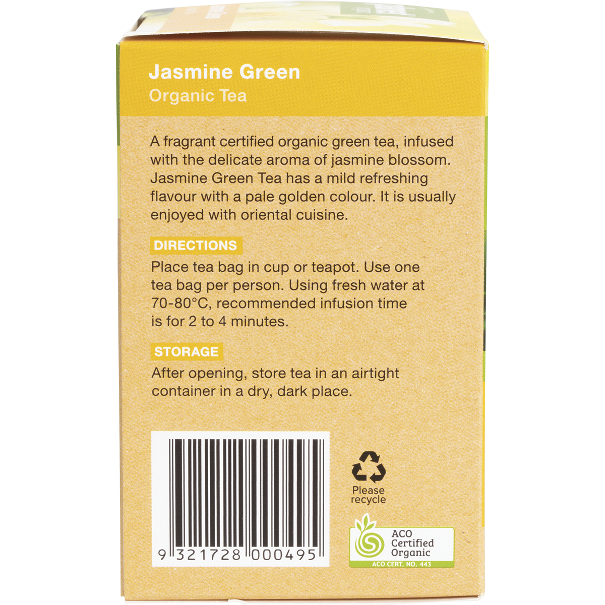 - Made with organic green tea leaves and the natural scent of jasmine blossoms.