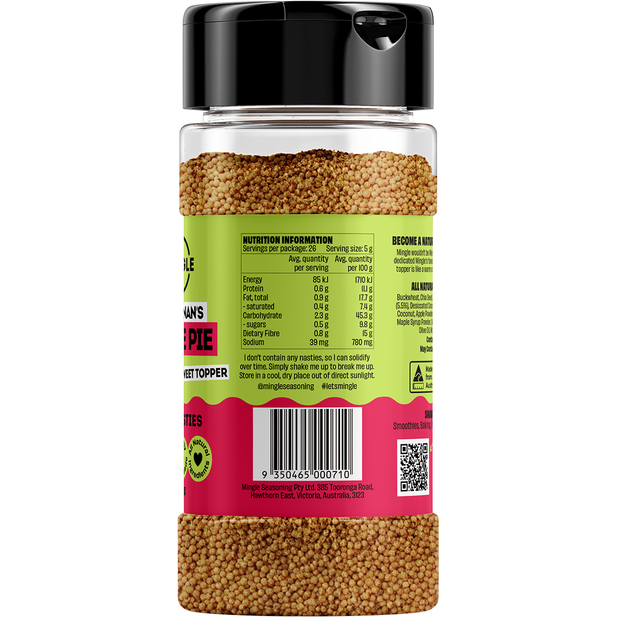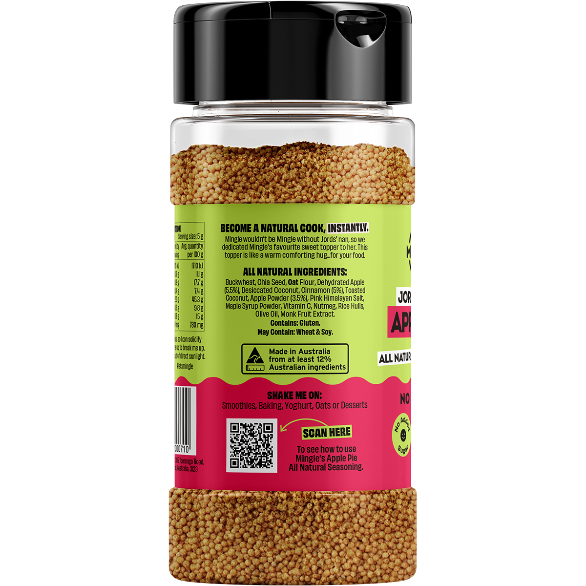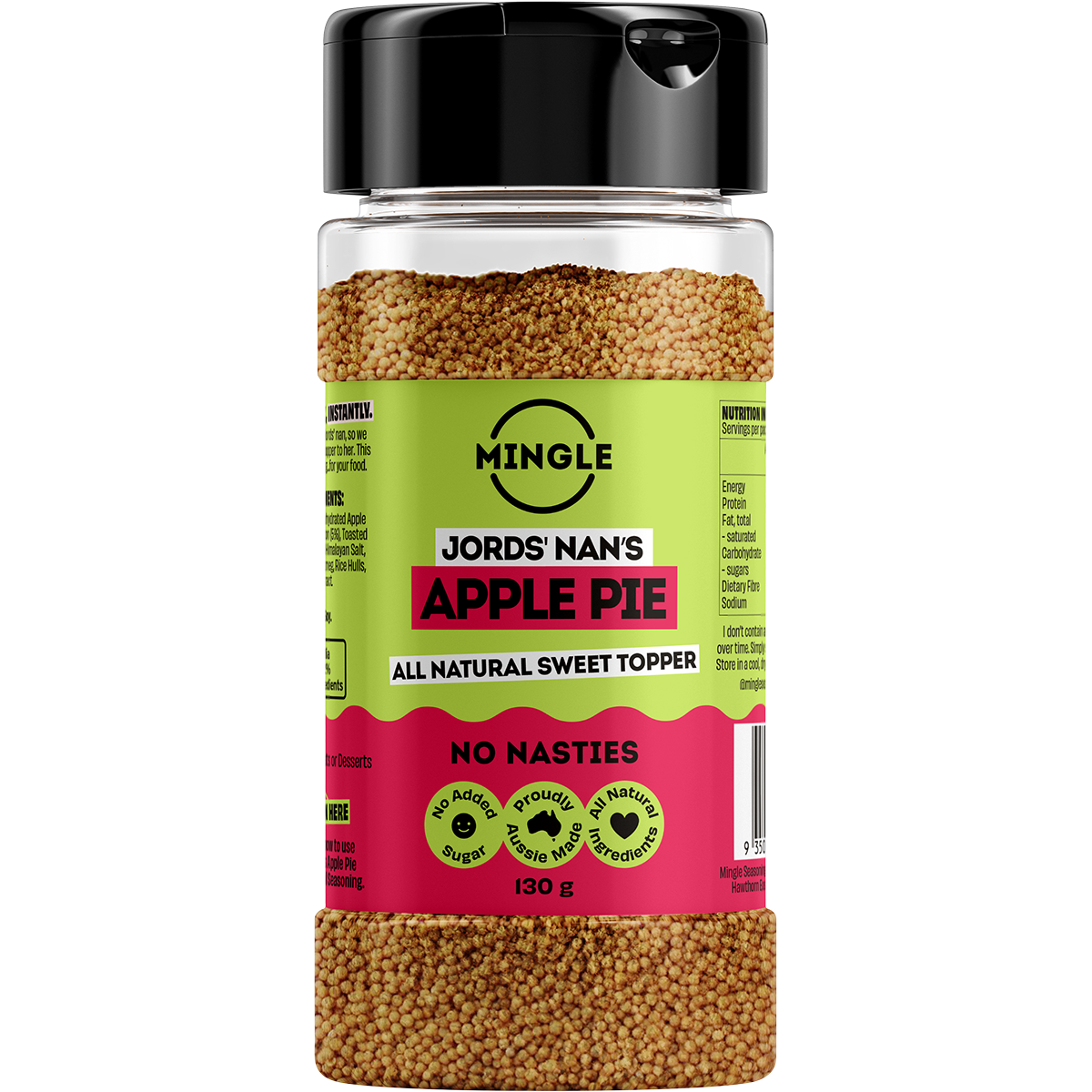 Whether you’re a health-conscious foodie, a busy parent looking for a quick breakfast solution, or just someone who loves a touch of sweetness in their life, Mingle Jord's Nan's Apple Pie All Natural Sweet Topper is the perfect addition to your pantry. Elevate your meals with a sprinkle of nostalgia and enjoy the goodness of nature with every bite.