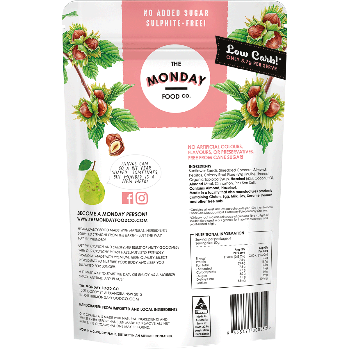 Indulge in a deliciously nutritious breakfast or snack with The Monday Food Co. Keto Gourmet Granola Crunchy Roast Hazelnut. This gourmet granola is perfectly crafted for those who appreciate the delicate balance of taste and health. Whether you're following a ketogenic lifestyle or simply seeking a wholesome addition to your diet, this granola promises satisfaction with every crunchy bite. It's not just food; it's an experience that elevates your mornings or afternoon cravings.