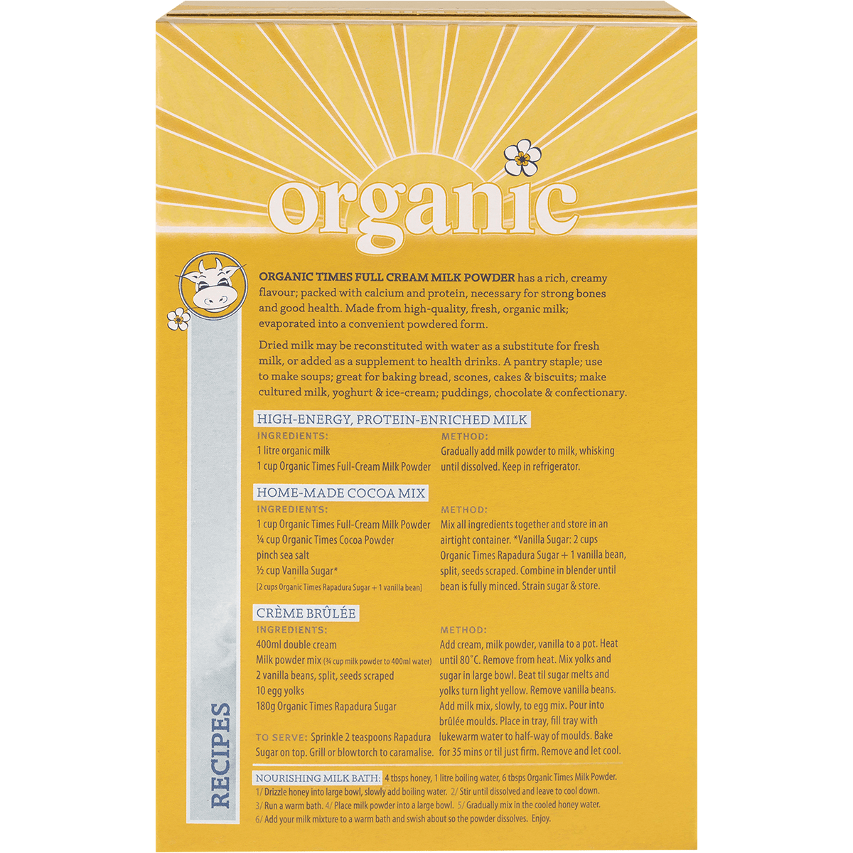 Discover the creamy goodness of Organic Times Milk Powder Full Cream, a delightful addition to your pantry that brings the rich taste of whole milk into your daily routine. Crafted from the finest organic whole milk, this milk powder is perfect for families, health-conscious individuals, or anyone seeking a wholesome alternative to traditional dairy. With its smooth texture and natural flavours, you can enjoy the essence of fresh milk anywhere—perfect for cooking, baking, or simply mixing into your favourite beverages.