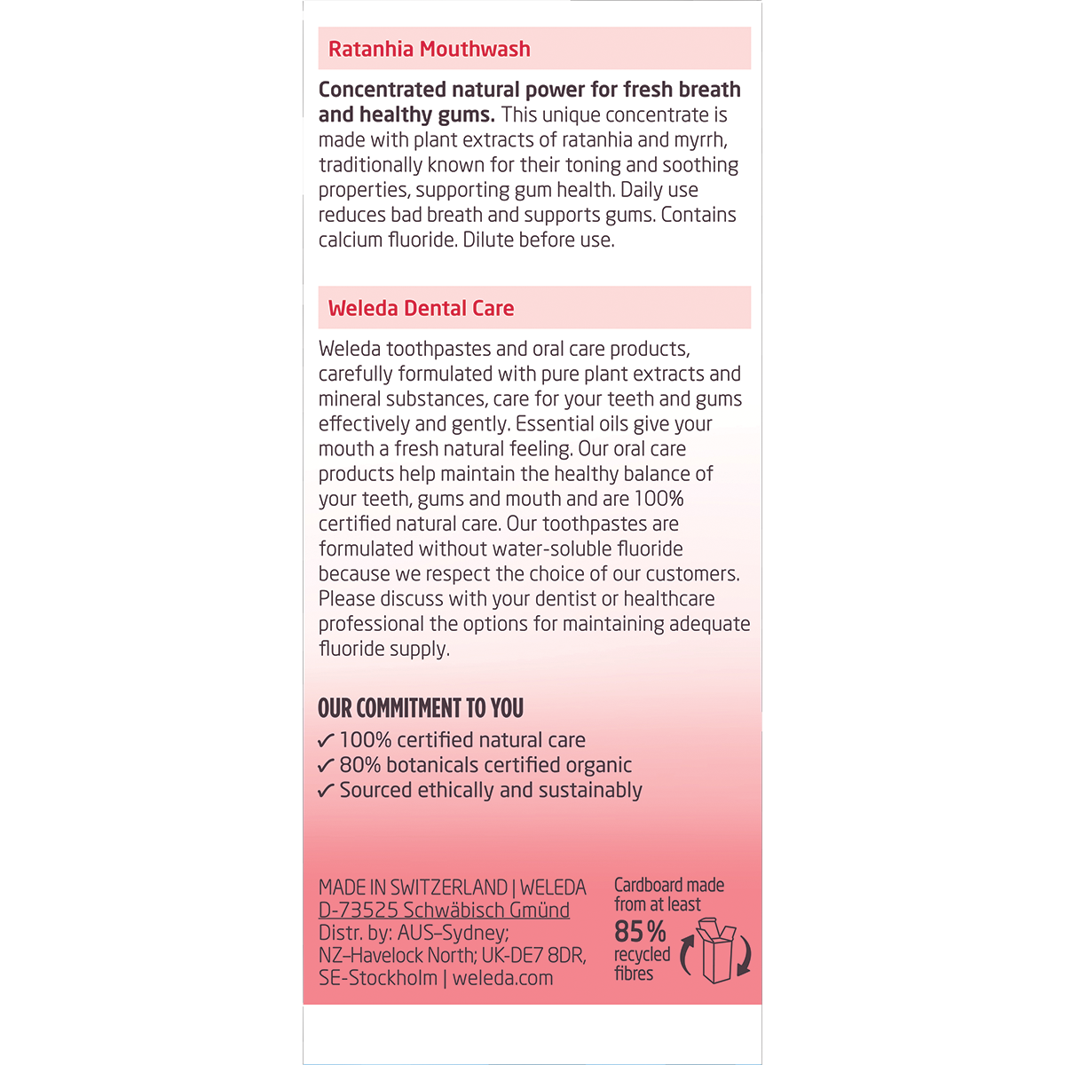 What sets Weleda apart is its commitment to using organic ingredients. Infused with the essence of Ratanhia and complemented by herbal notes, this mouthwash not only freshens breath but also embraces the natural benefits of plant extracts. With each rinse, you can feel good about what you’re putting in your mouth, knowing it’s free from artificial additives and filled with nature’s goodness.