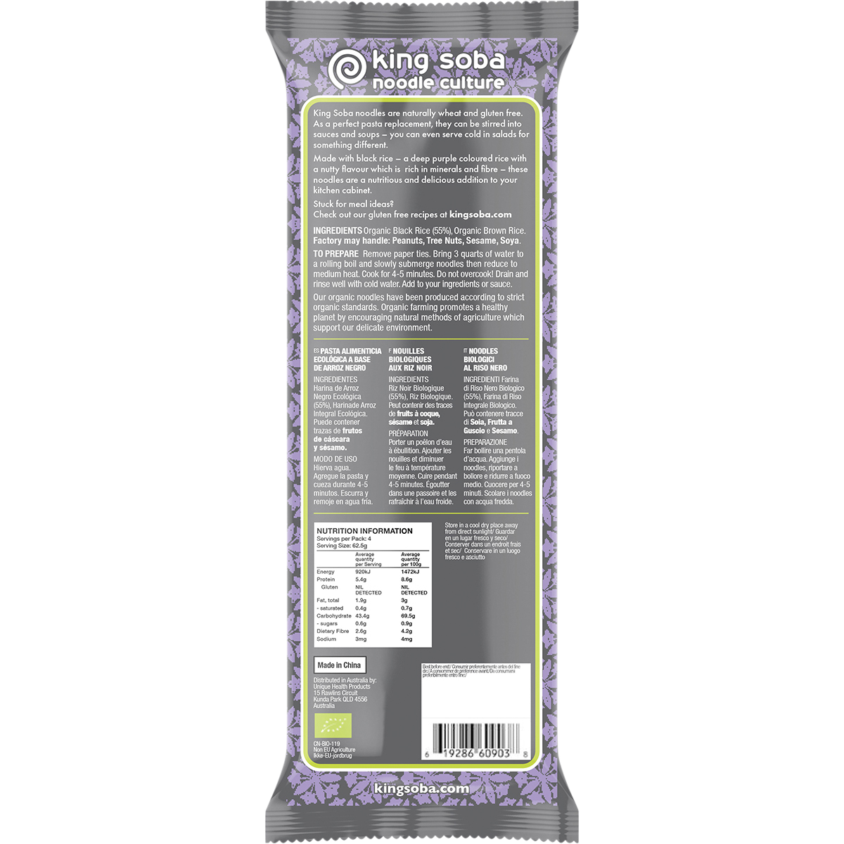 Why choose King Soba Organic Black Rice Noodles? Not only do they provide a source of plant protein, but they also cater to a variety of dietary preferences, including gluten-free and vegan lifestyles. With their deep, earthy flavour, these noodles can be easily incorporated into a range of dishes, from stir-fries to soups, bringing both nutrition and satisfaction to your plate. Embrace the wholesome goodness of organic ingredients while indulging in a truly flavourful experience.