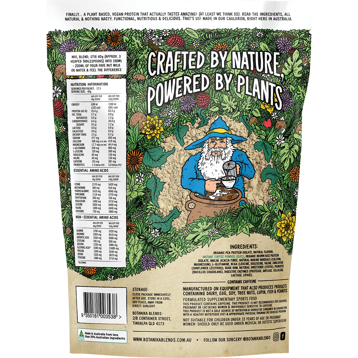 Introducing Botanika Blends Plant Protein Double Shot Iced Coffee – the perfect fusion of energising coffee and nourishing plant-based protein! This delightful blend is designed for those who crave a delicious pick-me-up without compromising on health. Whether you're an active individual looking to fuel your workouts or simply someone who enjoys a refreshing iced coffee treat, this protein-packed beverage is crafted to meet your needs. With a focus on clean, organic ingredients, you can sip with confidence knowing you're nourishing your body while indulging in rich coffee flavour.
