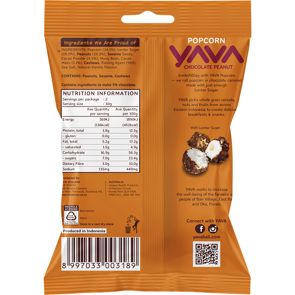 Crafted with care, YAVA Popcorn Chocolate Peanut is designed for those who seek clean, plant-based ingredients without compromising on flavour. The blend of high-quality popcorn, organic peanuts, and a hint of cacao creates a delightful treat that is both nourishing and indulgent. With natural sweetness from Lontar sugar and a touch of sea salt, each handful offers a satisfying crunch and a burst of flavour that will leave you wanting more. This snack is not just delicious; it’s a conscious choice for those who prioritise wellness in their snacking habits.