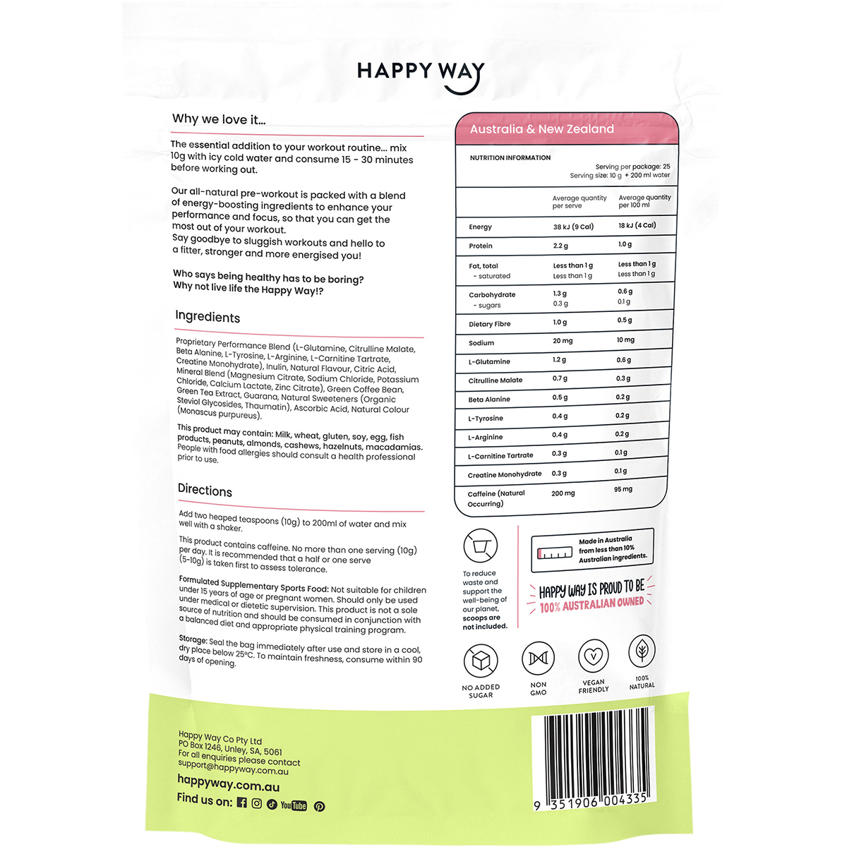 Why choose Happy Way? Because it stands out in the sea of pre-workout options by focusing on clean, natural ingredients. You can feel confident knowing that each scoop is packed with plant-based powerhouses like L-Glutamine, Citrulline Malate, and Green Tea Extract. This not only supports your physical performance but also provides a refreshing boost of energy without the crash. Plus, the delightful Strawberry Kiwi flavour makes it a treat to consume!