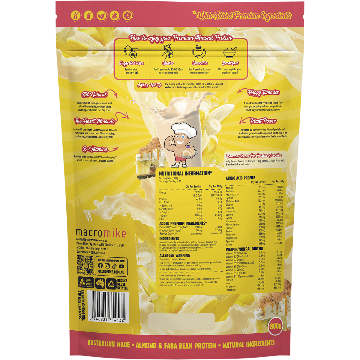 Indulge in the delightful taste of MACRO MIKE Premium Almond Protein Banana Cream Pie, a deliciously crafted protein powder designed for those who crave both flavour and nutrition. Perfect for health enthusiasts, fitness lovers, and anyone seeking a guilt-free treat, this protein blend combines high-quality almond and faba bean proteins to fuel your body with the clean energy it needs. With a mouthwatering banana cream pie flavour, it transforms your smoothies, shakes, and baked goods into a delectable experience that you won't want to miss.