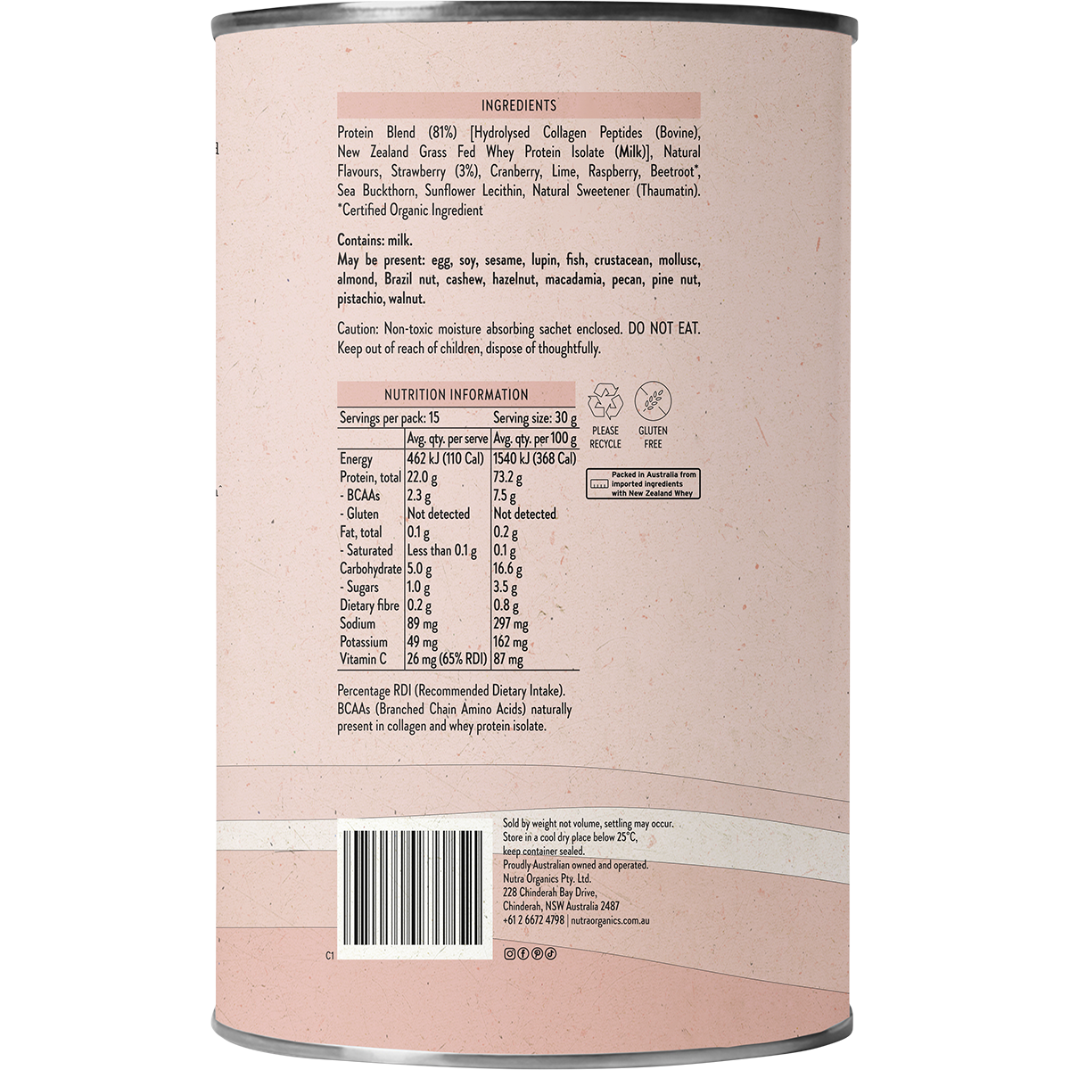 Nutra Organics Protein Water is more than just a drink; it’s a carefully curated blend of hydrolyzed collagen peptides and New Zealand grass-fed whey protein isolate. This nutritious formula is designed to provide you with a clean, refreshing source of protein that’s easy to digest and packed with flavour. With the added benefits of organic beetroot and sea buckthorn, you can enjoy a guilt-free indulgence that not only tastes great but also complements your health journey.