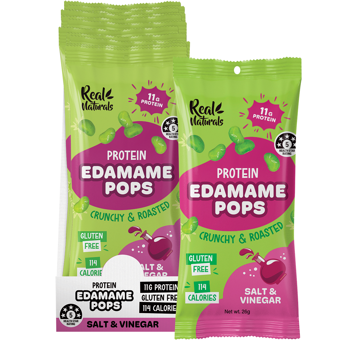 Real Naturals Protein Edamame Pops | Salt & Vinegar (10 Pack)