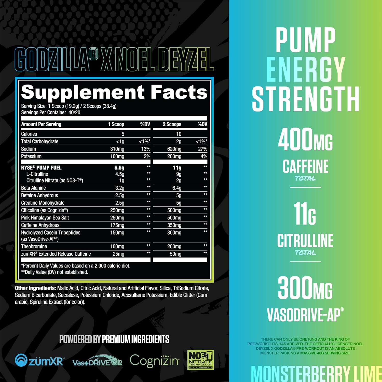 Unleash the ultimate beast mode with the officially licensed RYSE Godzilla Pre-Workout, crafted in collaboration with Noel Deyzel. This isn't just a pre-workout—it's a high-performance formula engineered for maximum pumps, explosive energy, and crushing focus, all wrapped up in the fierce Monsterberry Lime flavor.