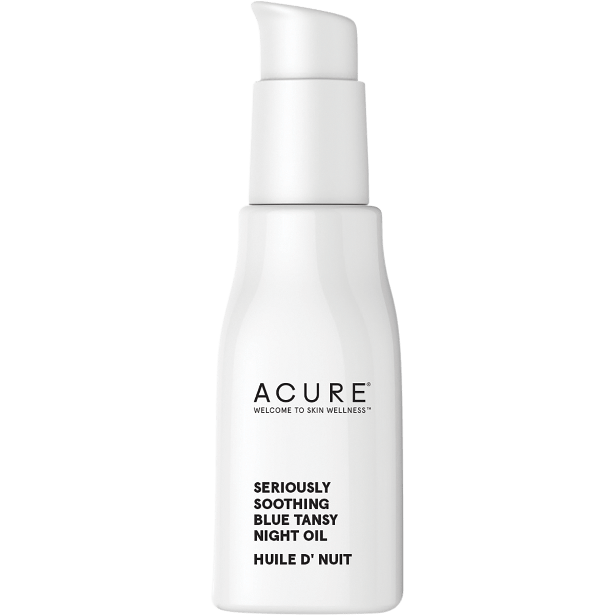 Discover the magic of nighttime rejuvenation with ACURE Seriously Soothing Blue Tansy Night Oil. This luxurious facial oil is meticulously crafted for those seeking a calming and nourishing addition to their evening skincare routine. Ideal for all skin types, especially sensitive and stressed skin, this blend envelops your complexion in a veil of hydration and tranquility, preparing it for a restful night and a radiant morning.