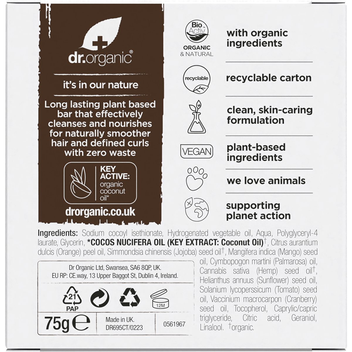 Why choose Dr. Organic? This bar is designed with your hair's health in mind, utilizing a blend of organic ingredients that work in harmony to enhance your natural beauty. The rich coconut oil penetrates deeply, offering hydration, while the natural oils from jojoba and mango help nourish and soften your strands. This product is perfect for anyone looking to elevate their hair care regime with a sustainable, planet-friendly alternative that doesn’t compromise on quality or results.