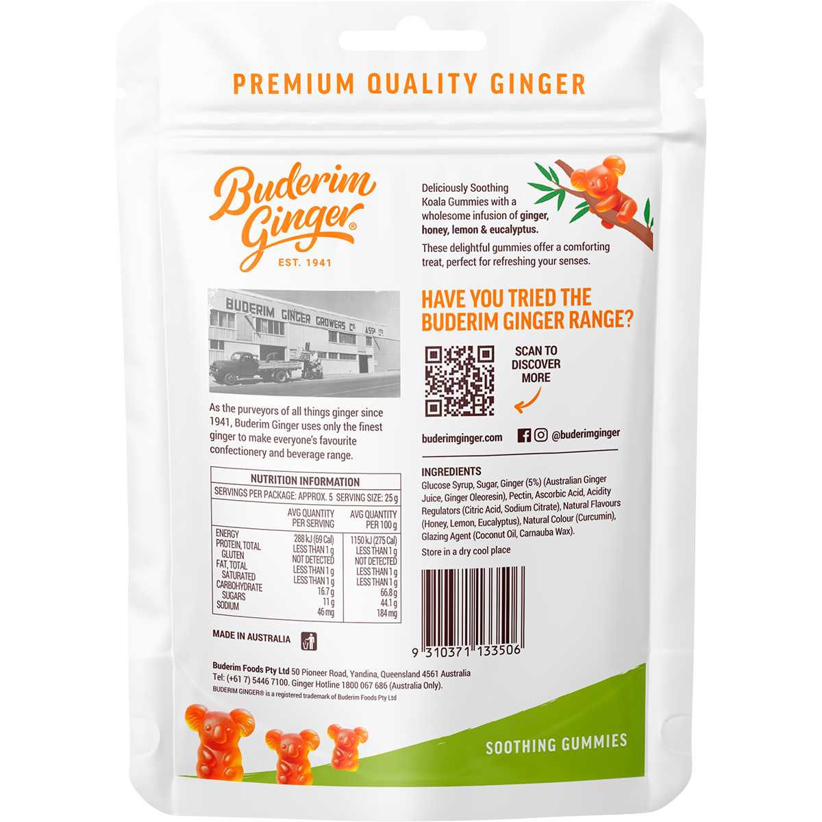These gummies make it easy to enjoy the benefits of ginger on the go. Perfect for busy lifestyles, they offer a sweet escape that combines taste and health in every chewy piece. With Buderim’s commitment to quality and sustainability, you can indulge in these gummies knowing you’re making a smart choice for both yourself and the planet.