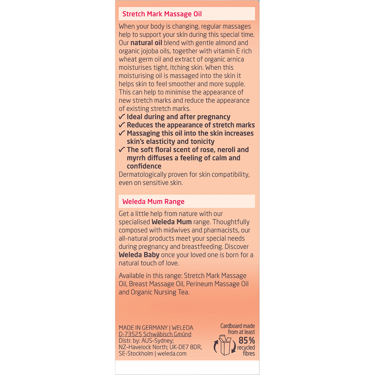 Discover the nurturing power of Weleda Stretch Mark Massage Oil Mum, a luxurious blend designed specifically for expectant mothers. This 100ml bottle of pure indulgence is crafted to support your skin’s elasticity during pregnancy, providing a soothing, hydrating experience that feels as good as it smells. Made with a harmonious mix of natural oils, this massage oil envelops your skin in moisture while helping to prevent the appearance of stretch marks, allowing you to embrace your changing body with confidence.