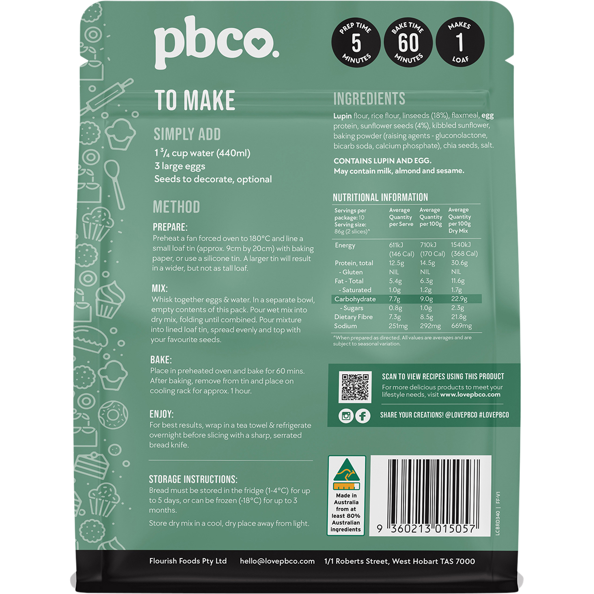 Packed with nutrient-rich ingredients, PBco Sunflower & Linseed Bread Mix offers a satisfying and fulfilling experience. The blend of lupin flour, rice flour, and an array of seeds creates a unique texture that is both fluffy and hearty. Each slice is not only delicious but also brimming with the essential nutrients your body craves. Say goodbye to boring sandwiches and hello to a new world of flavour and wellness with every bite!