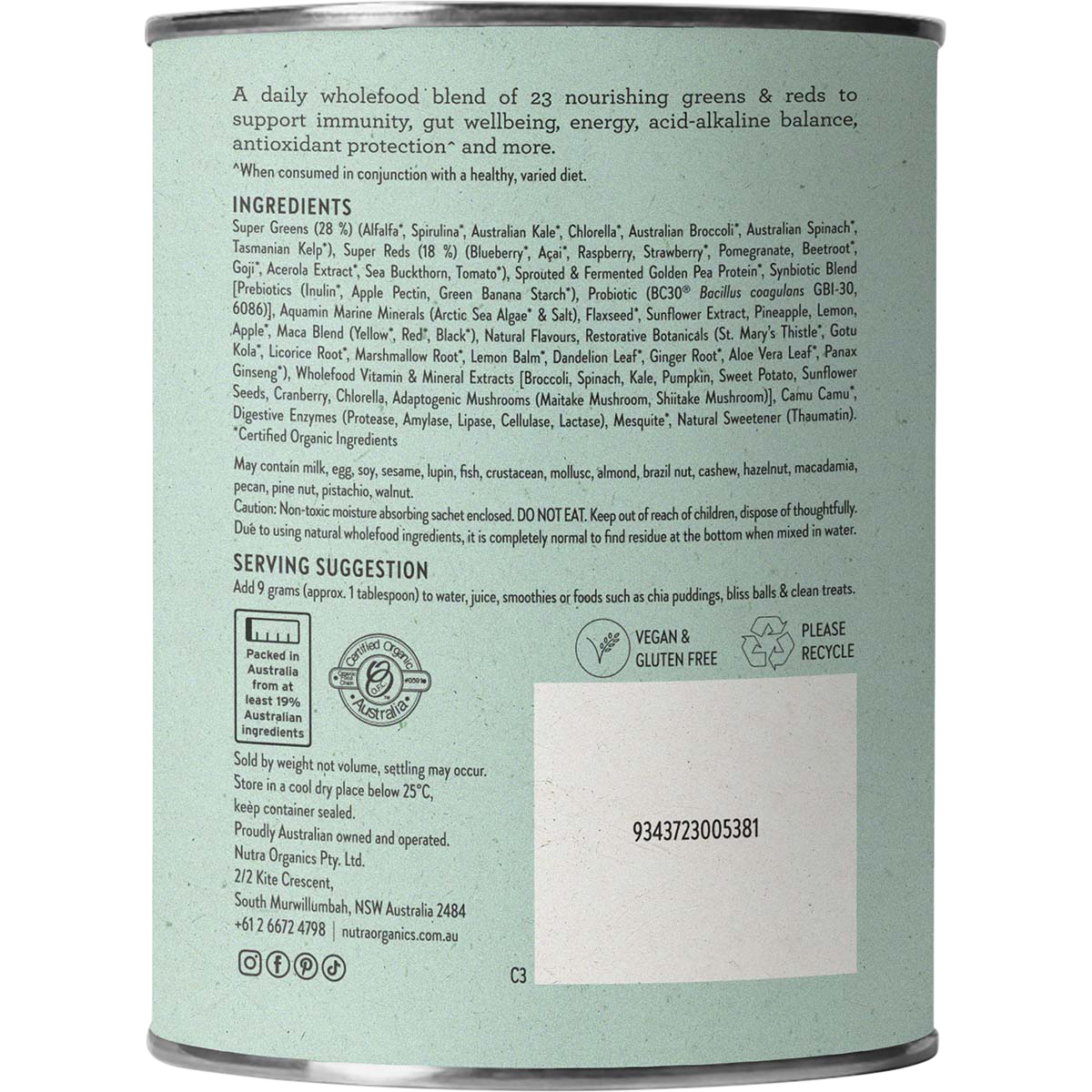 - Supports overall wellness with a balanced blend of super greens and super reds.