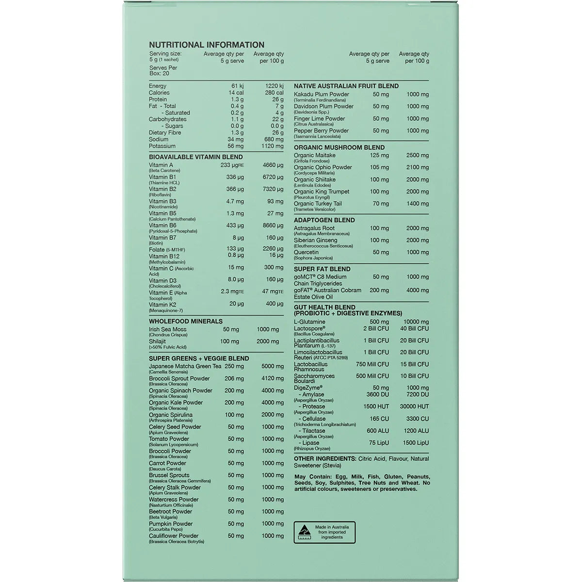A powerful blend of greens, vegetables, native fruits, adaptogens, probiotics, and bioavailable vitamins all in one scoop. 🌿 Crafted to fuel your energy, support digestion, and elevate everyday wellness with real, nutrient-rich ingredients.
