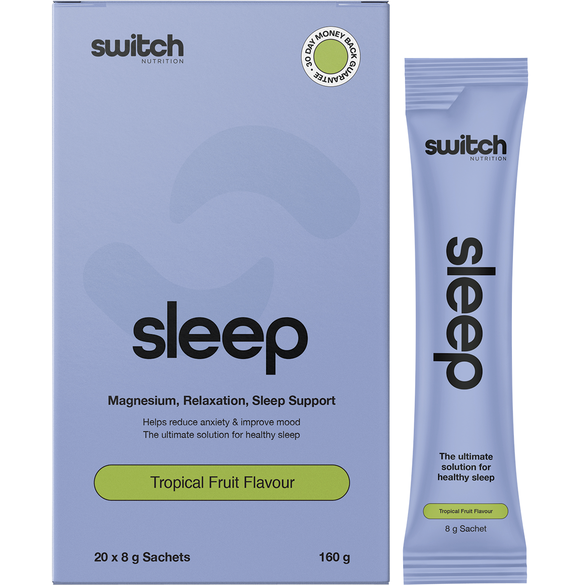Switch Nutrition Sleep Magnesium is a comprehensive, multi-pathway formula designed to help you unwind, reduce stress, and achieve truly restorative sleep. Unlike basic magnesium supplements, this advanced blend combines highly bioavailable Magnesium Citrate with powerful amino acids, botanical extracts (like Tart Cherry and Holy Basil), and nervous system supporting B vitamins to optimize your sleep cycle.