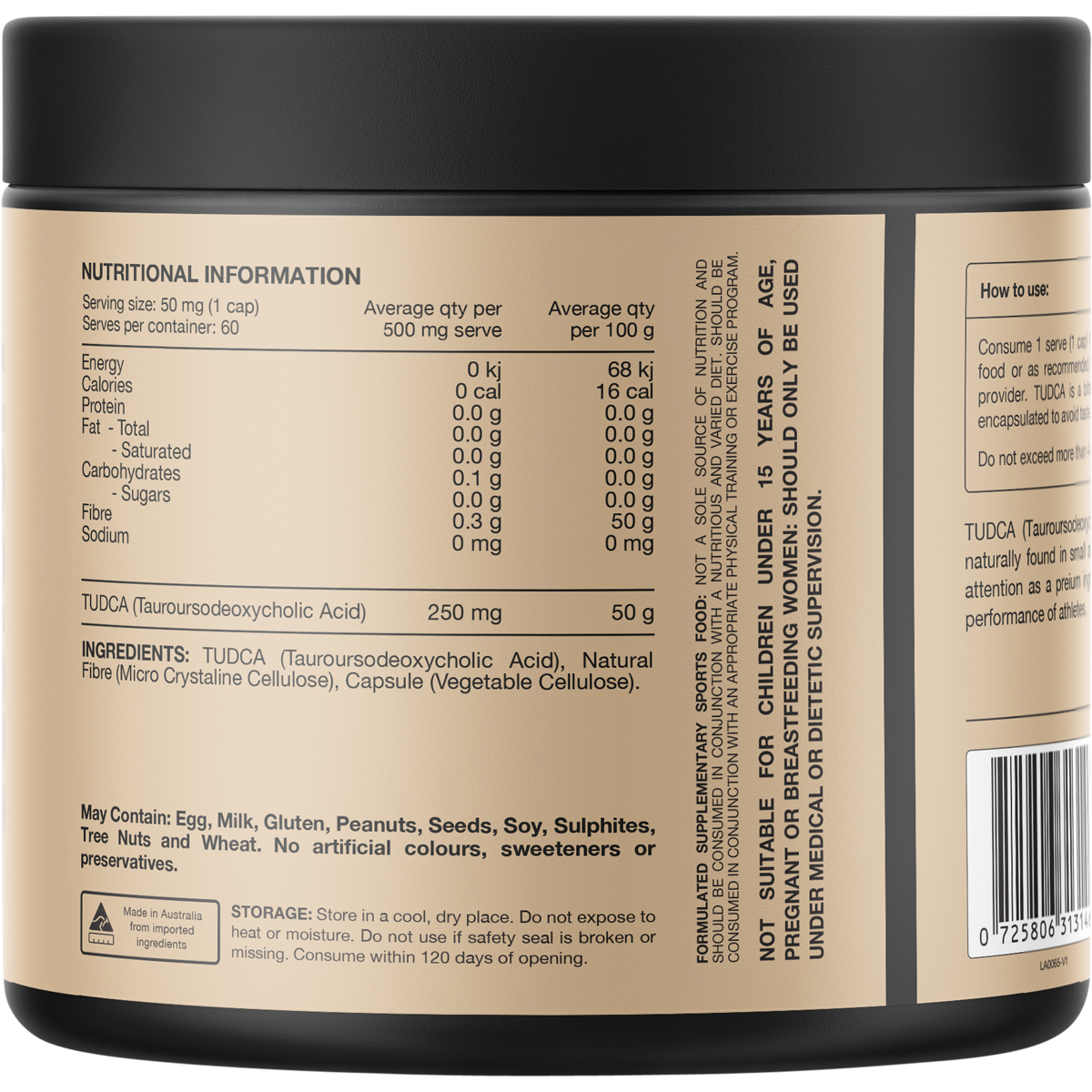 Pure & Potent: High-quality Tauroursodeoxycholic Acid delivered in easy-to-swallow vegetable capsules.