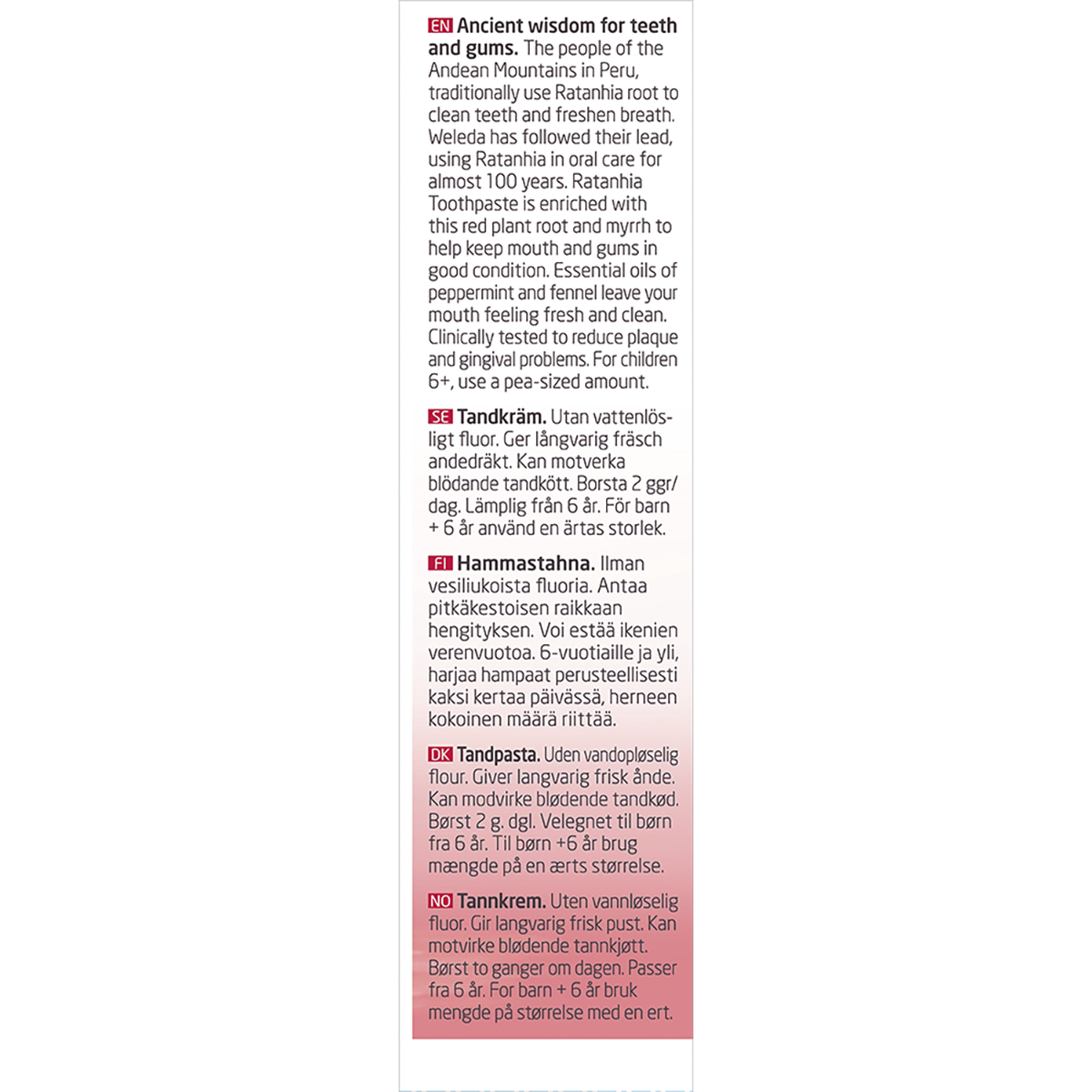 Discover the refreshing essence of nature with Weleda Toothpaste Ratanhia. This 75ml tube is crafted for those who prioritise oral health without compromising on the purity of their personal care products. Formulated with a unique blend of plant extracts, including the powerful Ratanhia root, this toothpaste is perfect for anyone seeking a natural alternative that supports their wellness journey while ensuring a bright, clean smile.