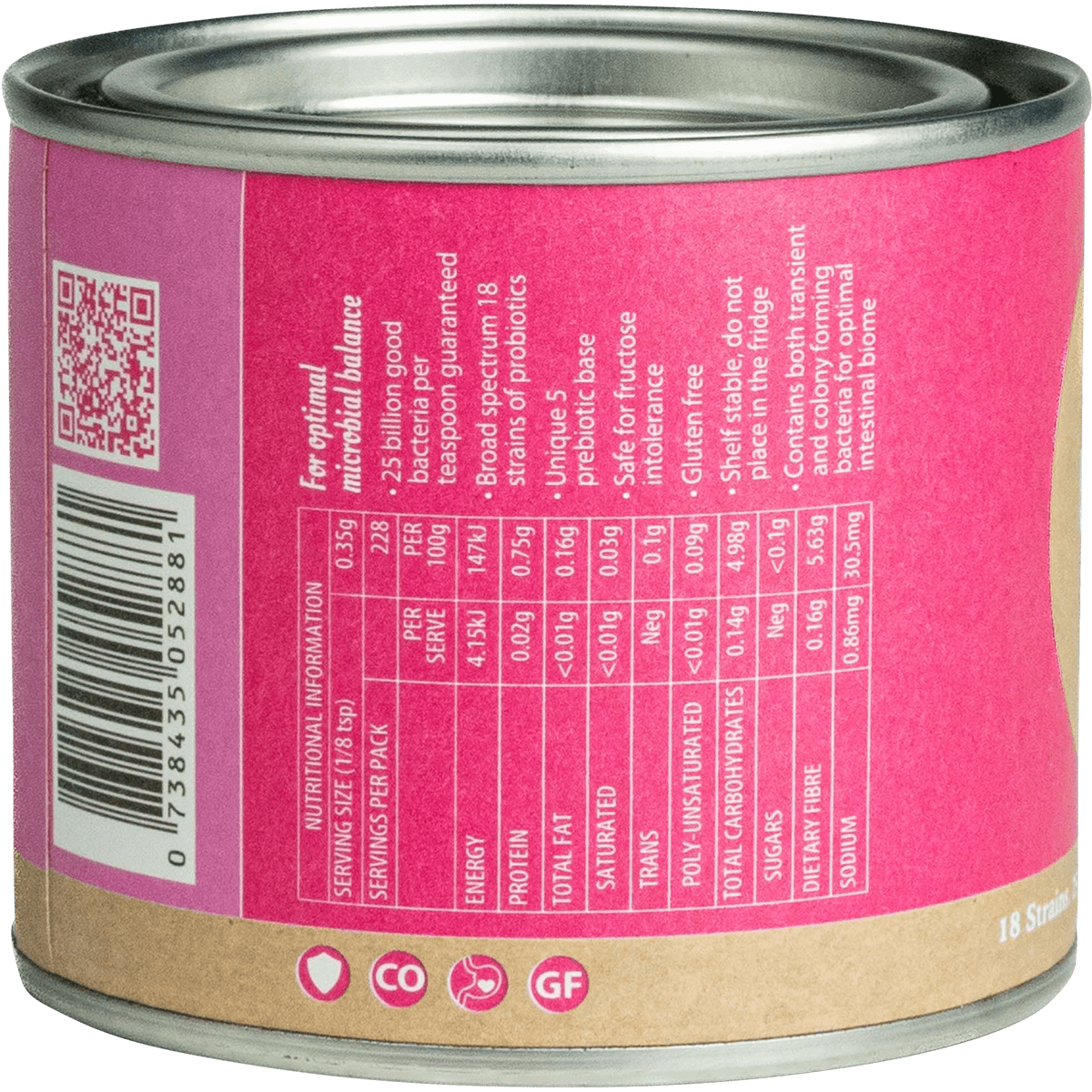 - 80g of powerful, plant-based prebiotic and probiotic blend in a resealable pouch.