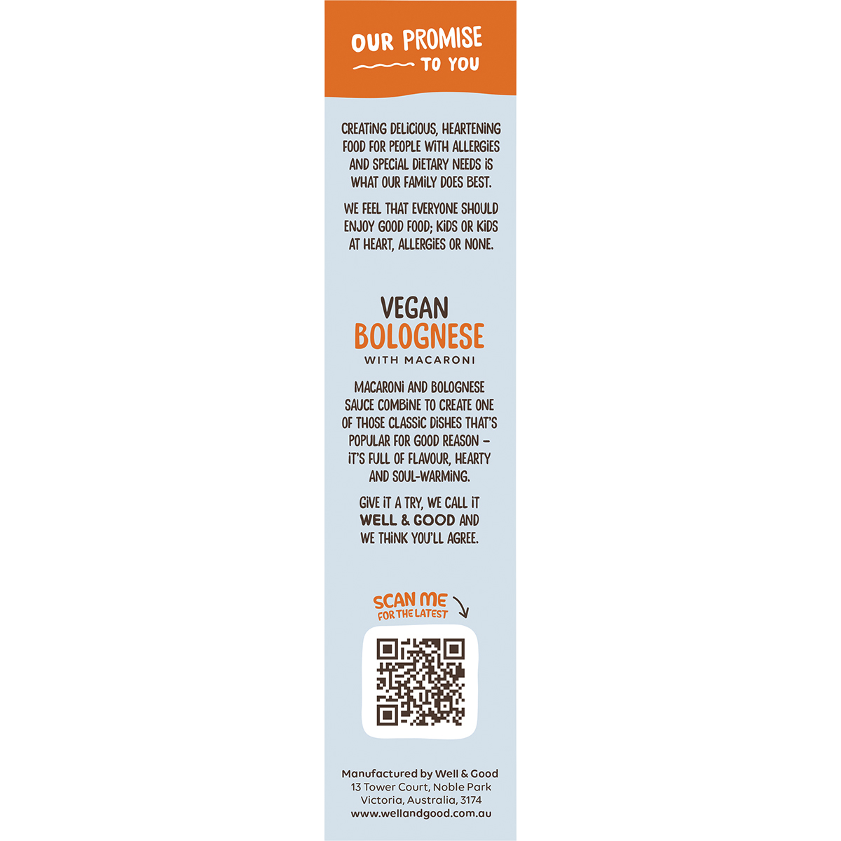 Crafted with a thoughtful blend of high-quality ingredients, this bolognese features a fantastic fusion of plant proteins and vegetables, creating a hearty and satisfying meal. It’s not just about nourishment; it’s about enjoying a delicious experience. The subtle hints of garlic, onion, and oregano elevate the taste, making it a crowd-pleaser for both adults and kids. With Well & Good Vegan Bolognese, you can savour every bite guilt-free, knowing you’re fueling your body with clean, compassionate ingredients.