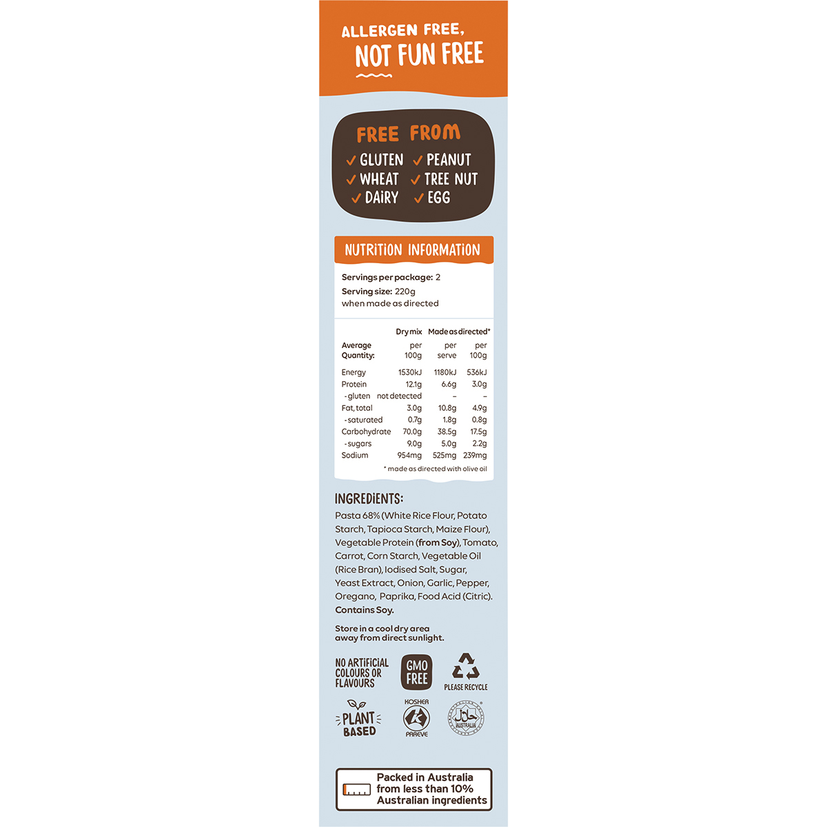 - Made with 68% pasta composed of a blend of gluten-free flours.