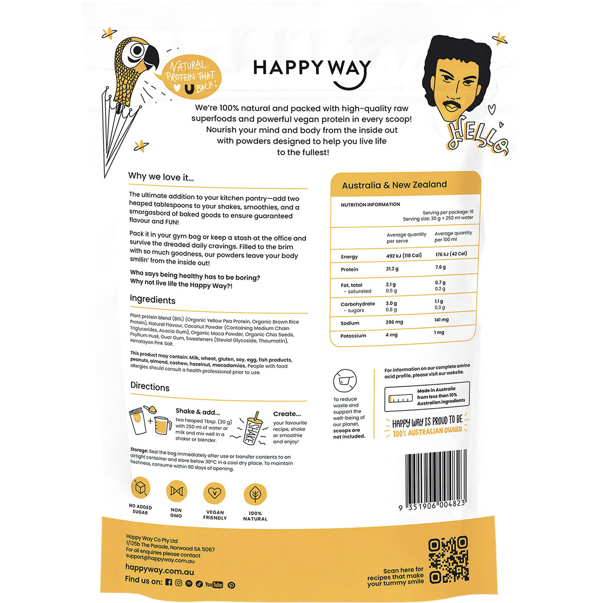 Discover the deliciously creamy and indulgent taste of Happy Way Vegan Protein Powder in Salted Caramel flavour! This 500g powerhouse is expertly crafted for health-conscious individuals looking to boost their protein intake without compromising on taste or quality. Whether you're an athlete, a busy professional, or simply someone who values nutritious living, this protein powder is perfect for you. It combines a carefully selected blend of plant proteins that not only support your daily wellness goals but also tantalise your taste buds with a hint of sweet and salty decadence.