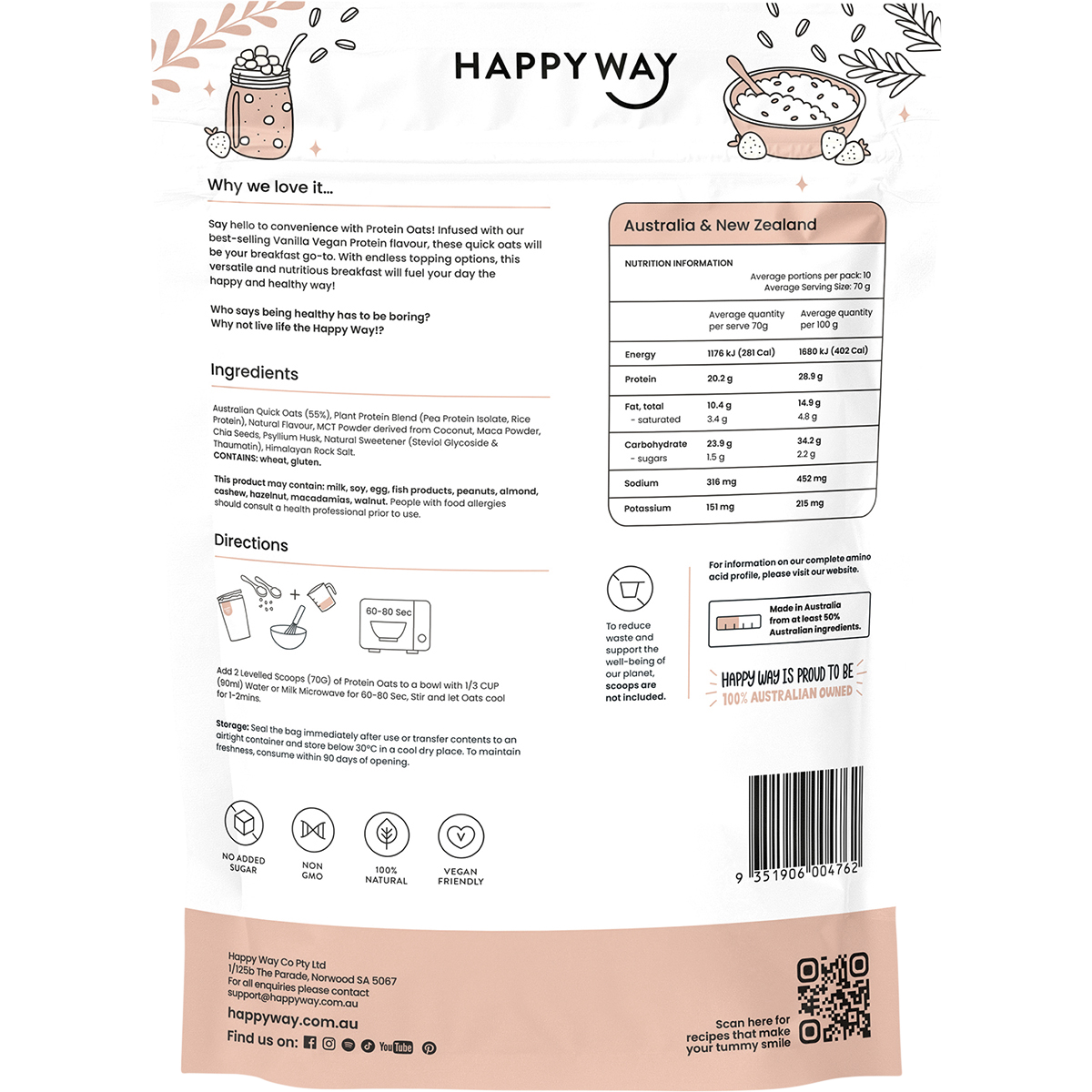 With Happy Way Vegan Protein Quick Oats, you're choosing a product that celebrates clean eating. This blend is thoughtfully crafted to ensure that each scoop is packed with goodness, providing you with the essential nutrients needed to tackle your day with confidence.
