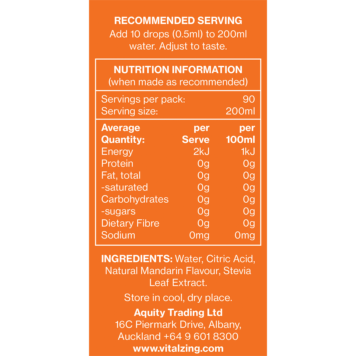 What sets Vital Zing apart is its commitment to clean, natural ingredients. Infused with natural mandarin flavour and a touch of stevia leaf extract, this water enhancer provides a sweet, tangy taste that is completely free from artificial additives. Ideal for health-conscious individuals and families alike, Vital Zing supports your wellness journey without sacrificing flavour. You can enjoy a revitalising drink that not only quenches your thirst but also encourages you to drink more water throughout the day.