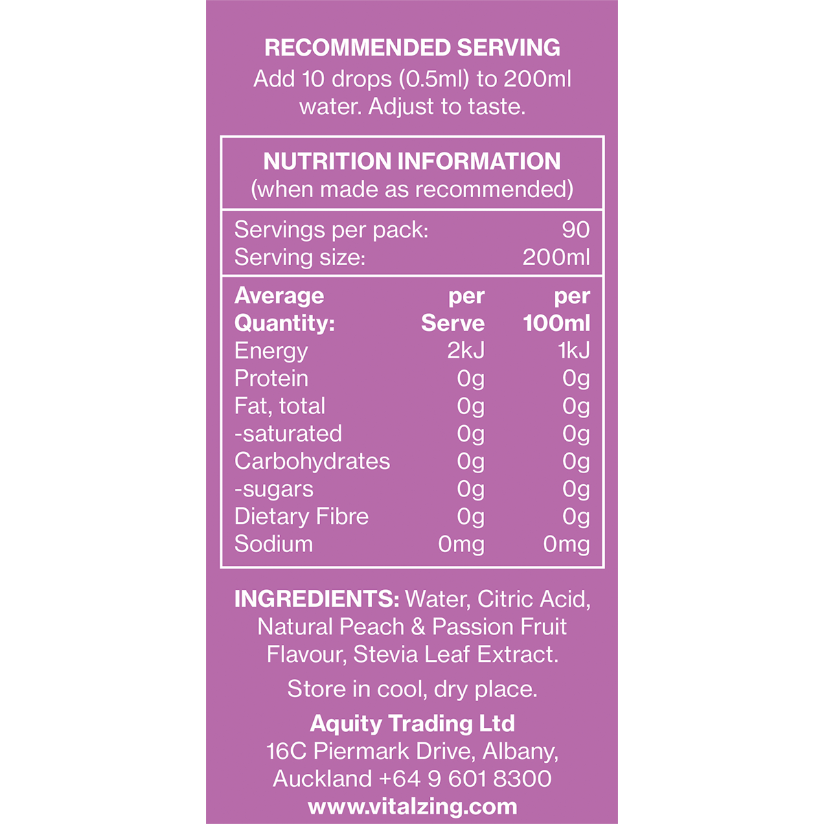 - Enhances water with a delicious peach and passionfruit flavour, making hydration enjoyable.